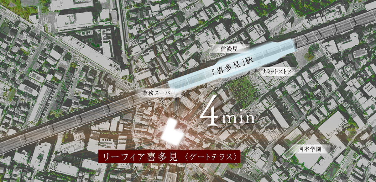 ※1:小田急マルシェ喜多見(約120m/徒歩2分)、業務スーパー喜多見店(約210m/徒歩3分)、ローソン 喜多見駅南店(約210m/徒歩3分)、ココカラファイン喜多見北口店(約240m/徒歩3分)、ファミリーマート喜多見店(約240m/徒歩3分)、サミットストア喜多見駅前店(約250m/徒歩4分)、信濃屋喜多見駅前店(約280m/徒歩4分)、コルモピア(約320m/徒歩4分)、セブンイレブン世田谷喜多見駅前店(約350m/徒歩5分)、セブンイレブン小田急喜多見店(約360m/徒歩5分)、DAISO喜多見駅前店(約360m/徒歩5分)、しいのき児童遊園(約380m/徒歩5分)、ながつか歯科医院(約160m/徒歩2分)、津江歯科医院(約180m/徒歩3分)、荻野眼科醫院(約180m/徒歩3分)、伊藤皮膚科クリニック(約180m/徒歩3分)、耳鼻咽喉科 弘重クリニック(約180m/徒歩3分)、岩戸診療所(約200m/徒歩3分)、喜多見こどもクリニック(約180m/徒歩3分)、きたみファミリーデンタル(約220m/徒歩3分)、喜多見 さくら歯科医院(約180m/徒歩3分)、喜多見駅前内科クリニック(約240m/徒歩3分)、藤沢クリニック(約240m/徒歩3分)、きたみ胃・大腸クリニック(約240m/徒歩3分)、徳永整形外科(約240m/徒歩3分)、喜多見眼科(約240m/徒歩3分)、喜多見皮膚科クリニック(約340m/徒歩5分)、喜多見整形外科(約340m/徒歩5分)、高倉内科クリニック(約360m/徒歩5分)
