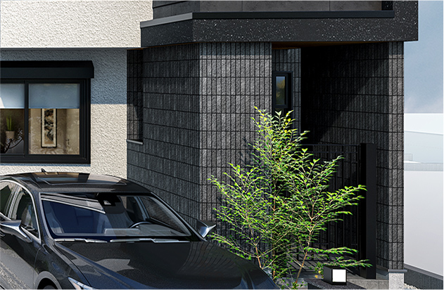 タイル1枚1枚に豊かな質感のブリックタイルを採用。