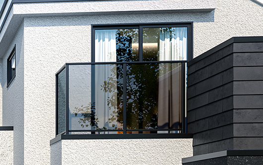 一部、住棟にL型のアクセントのフレームを施すなど、