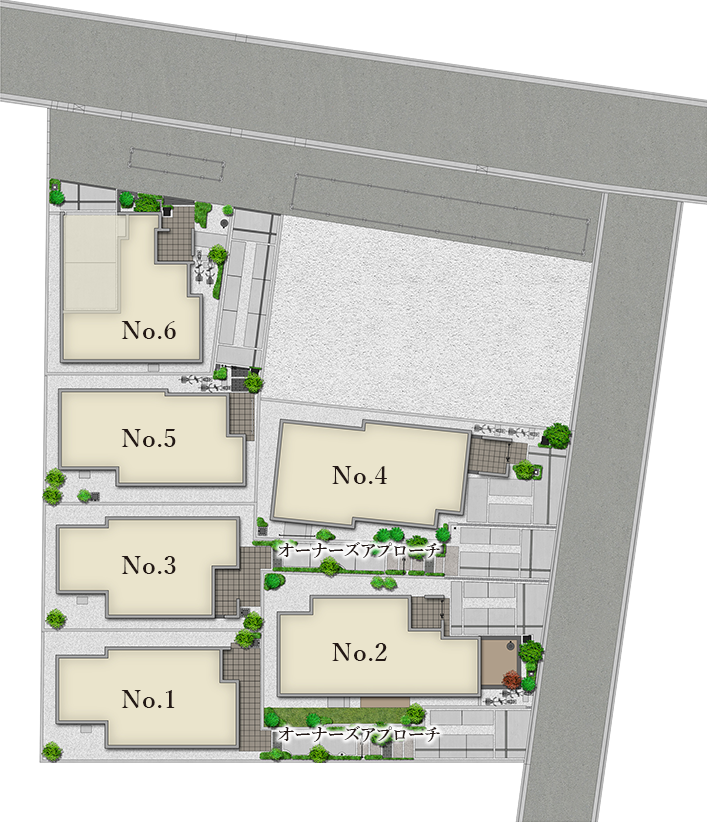 ※敷地配置イラスト、オーナーズアプローチイラストは、計画段階の図面を基に描き起こしたもので実際とは異なります。