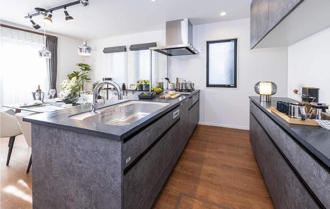 カウンタートップは高級感のあるデュポン社製のモデストを採用。耐熱性・耐傷性に優れており、汚れが染み込みにくく、汚れても簡単に落とせます。