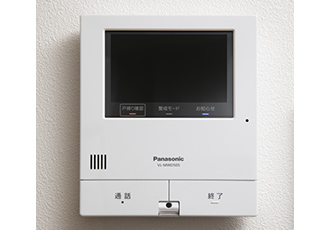 カラーモニターで来訪者を事前に確認できるテレビドアホンを設置。ハンズフリーで対話でき、録画機能も付いているほか、電子鍵システム採用でスマートフォンと連動させれば、外からでも操作できます。