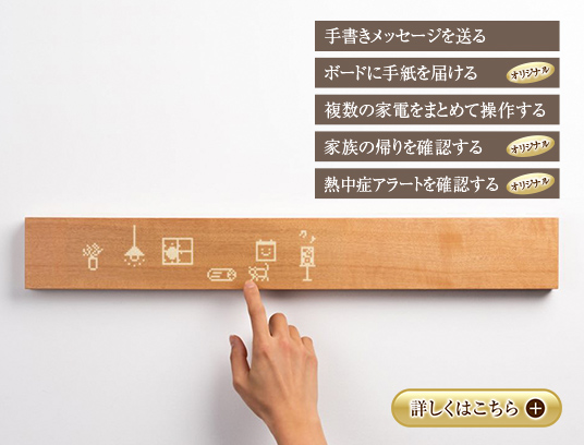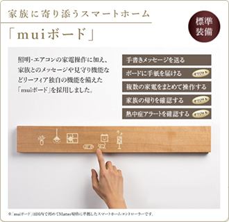 照明・エアコンの家電操作に加え、家族とのメッセージや見守り機能などリーフィア独自の機能を備えた「muiボード」を採用しました。
