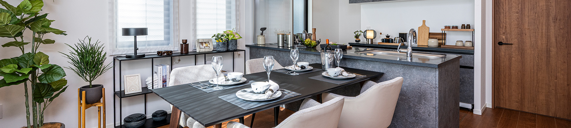 キッチンと統一感のあるデザインの造作食器棚を全邸に標準設置。機能的な収納が、時短家事をサポートしてくれます。