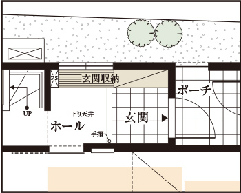 オーナーズアプローチの先に設えたプライベートな空間。外部からの視線も届きにくく、プランター等を置いて玄関まわりを飾るなど、自由な使い方が可能です。(No.1/No.3)
