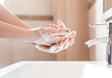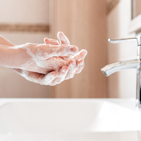 帰宅したらすぐに手洗いできるウェルカム洗面。タッチレス式水栓を採用し、風邪などの予防対策にも効果的です。
