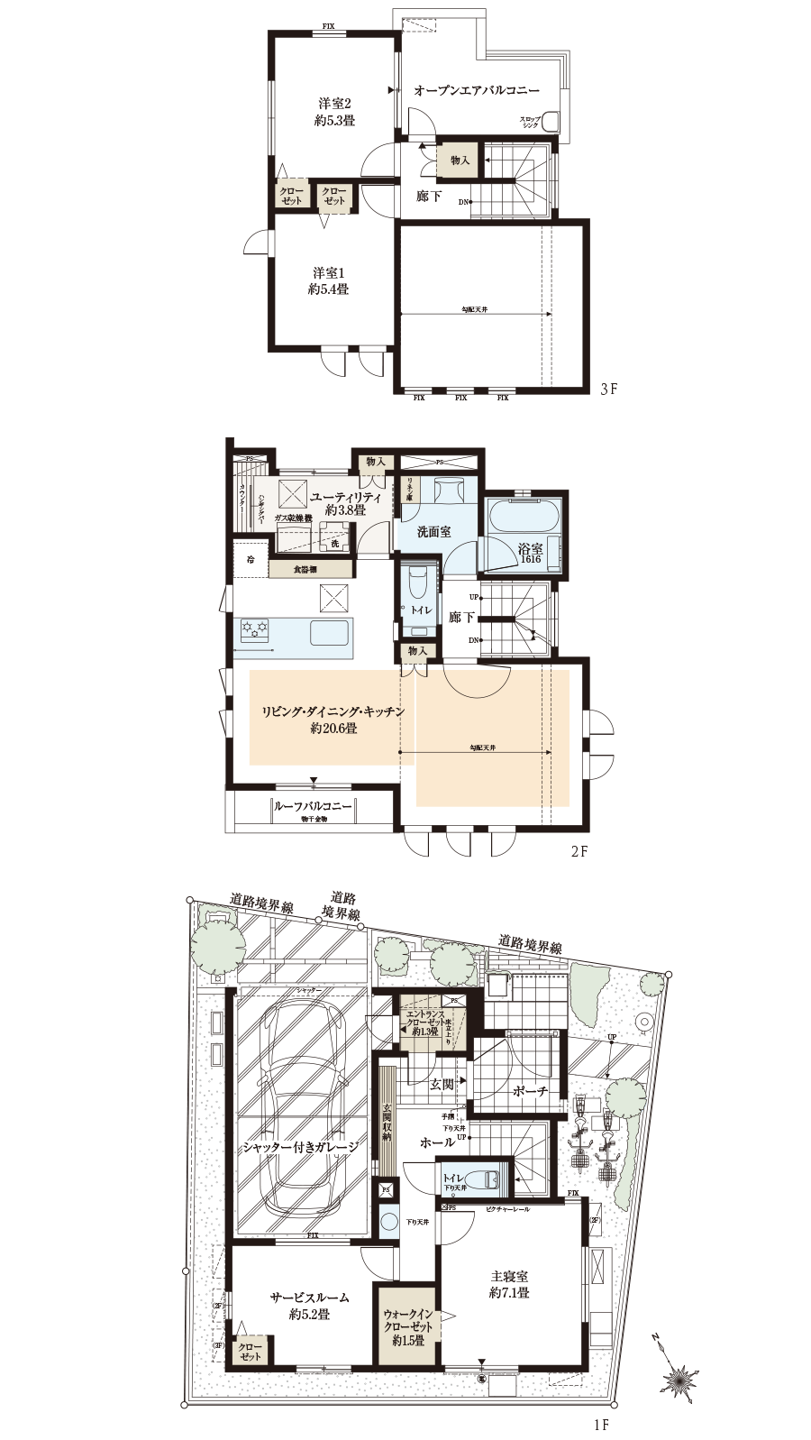 ●掲掲載の間取りは設計時の図面を基に描き起こした概略で、施工上やむを得ない変更が生じた場合は建物竣工時の状態を優先します。