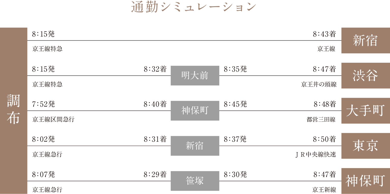 ※「新宿」駅まで22分は通勤時(7:00~9:00 に目標駅到着)の所要時間で、乗換・待ち時間等を含みます。また曜日・時間帯等により異なる場合があります。