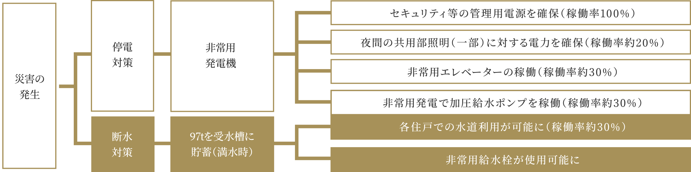 住まう方一人ひとりの安心安全の実現を追求し、万一に備える非常用発電機などのアイテムを格納した、防災倉庫を全フロアに設置しています。