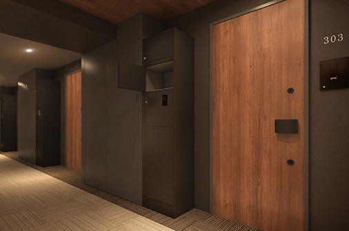 居住階に各住戸専用の宅配ロッカーを完備。帰宅後すぐに取り出せ、重たい荷物をエントランスから運ぶ必要がありません。