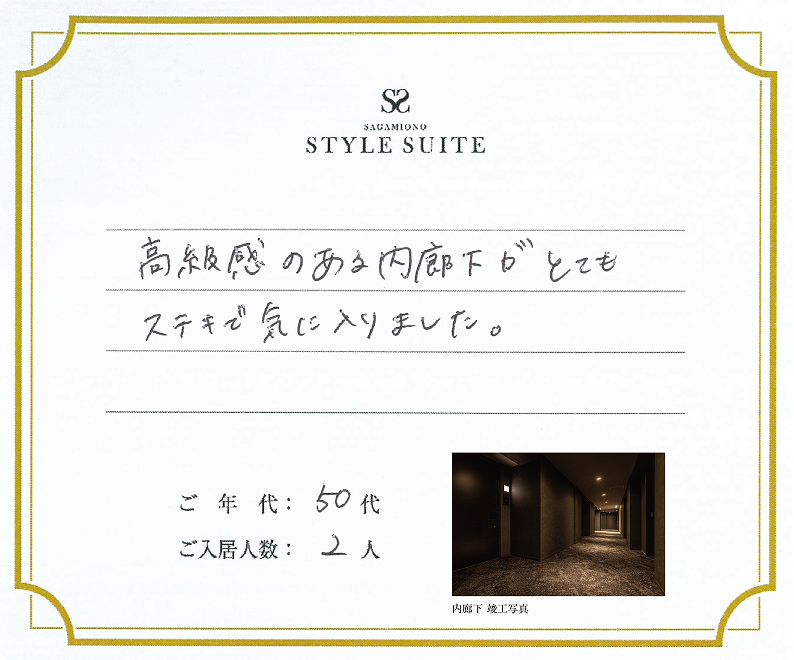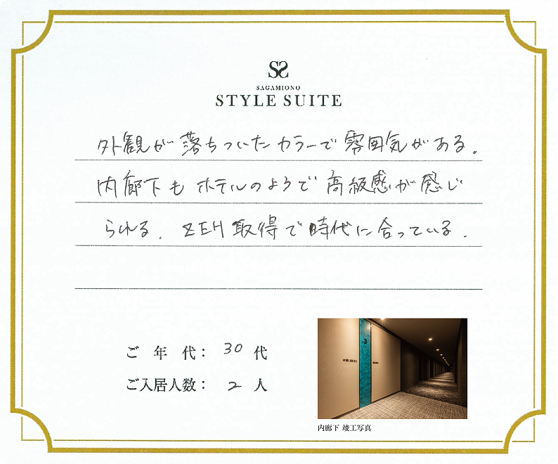 セキュリティ性に配慮した高級感のある「内廊下」設計、ZEH-M Oriented取得マンション であることに多くのご評価をいただいております。その他にも、安心してお住まいいただけるよう、3段階セキュリティシステムやリモコン式リングシャッターゲートなどの共用設備もご用意しております。
